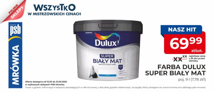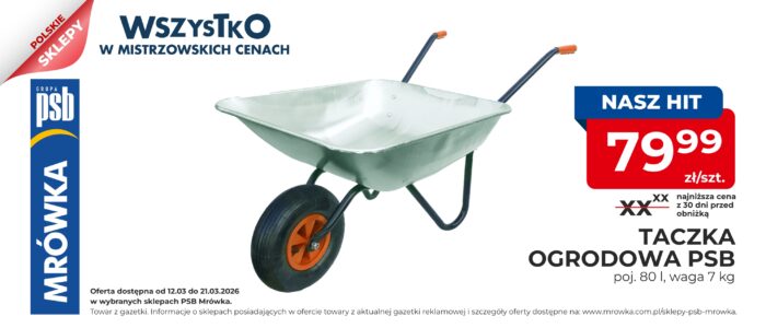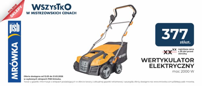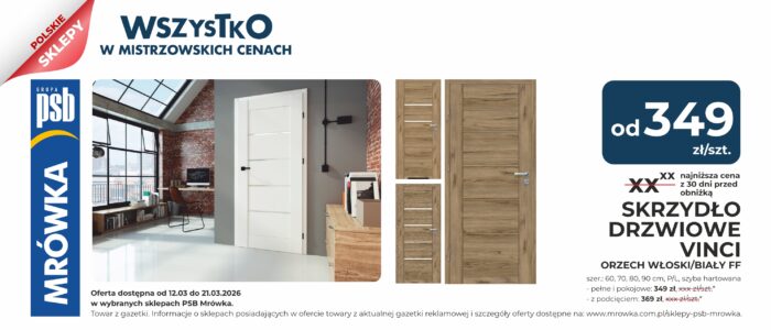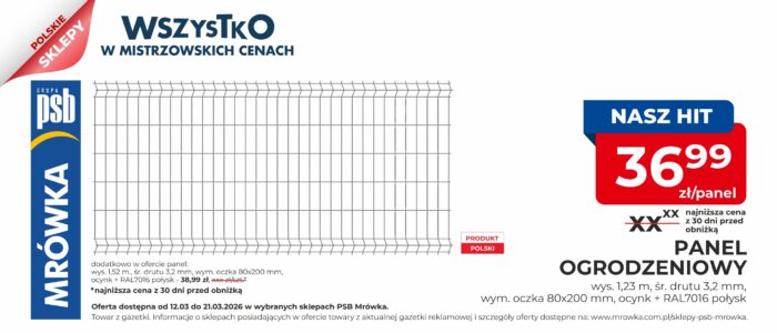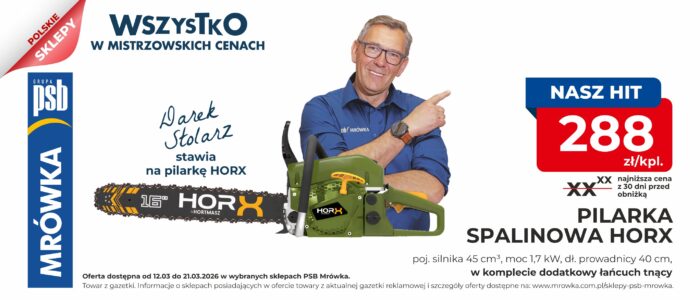 Sklep PSB Mrówka w Nasielsku szybko zdobył wielu stałych Klientów. Jest to zasługą bardzo dobrego zaopatrzenia w artykuły budowlane, do wykończenia budowy i wyposażenia wnętrz oraz wiele innych potrzebnych produktów. Wszystkie oferowane produkty sprzedajemy w konkurencyjnych cenach. Aktualnie jesteśmy największym składem budowlanym na rynku lokalnym – powierzchnia sklepu wynosi niemalże 2000 m2! Swobodnie mieści ona tysiące artykułów, od płyt gipsowych, tynków i gładzi, przez farby, silikony, lakiery, aż po okładziny podłogowe, panele podłogowe czy też meble kuchenne ogrodowe lub do łazienek. Ponadto oferujemy szereg narzędzi i elektronarzędzi, akcesoria rowerowe i motoryzacyjne, jak również elementy hydrauliki. Jesteśmy też dostawcą węgla i drewna opałowego. Ponadto w asortymencie znajdują się: drzwi wewnętrzne oraz zewnętrzne, karmy dla zwierząt, kora ogrodowa, odzież robocza BHP, rośliny ogrodowe i systemy kominowe czy też ziemia ogrodowa i wiele innych. W sprzedaży mamy także okna i rolety.